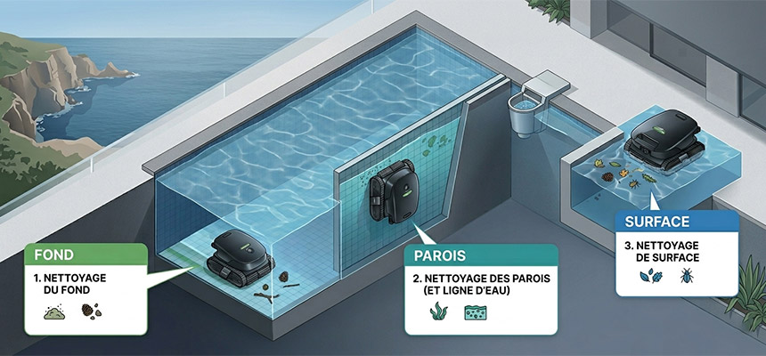 Choisir le bon robot de piscine n’a jamais été aussi simple ! Comparez les modèles selon votre piscine : taille, revêtement, zones à nettoyer. Trouvez en quelques secondes le robot parfaitement adapté à votre installation.